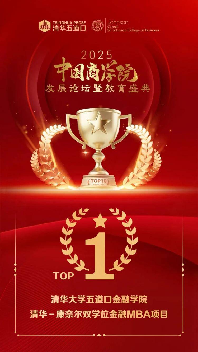 11月28日,由MBAChina与《经理人》杂志联合主办的2025年度中国商学院发展论坛暨教育盛典在北京举办,清华-康奈尔双学位金融MBA项目荣登“2025年度中国商学院金融MBA项目TOP10”榜单第一名,以榜样之力引领金融教育新方向,点亮行业高质量发展的未来。