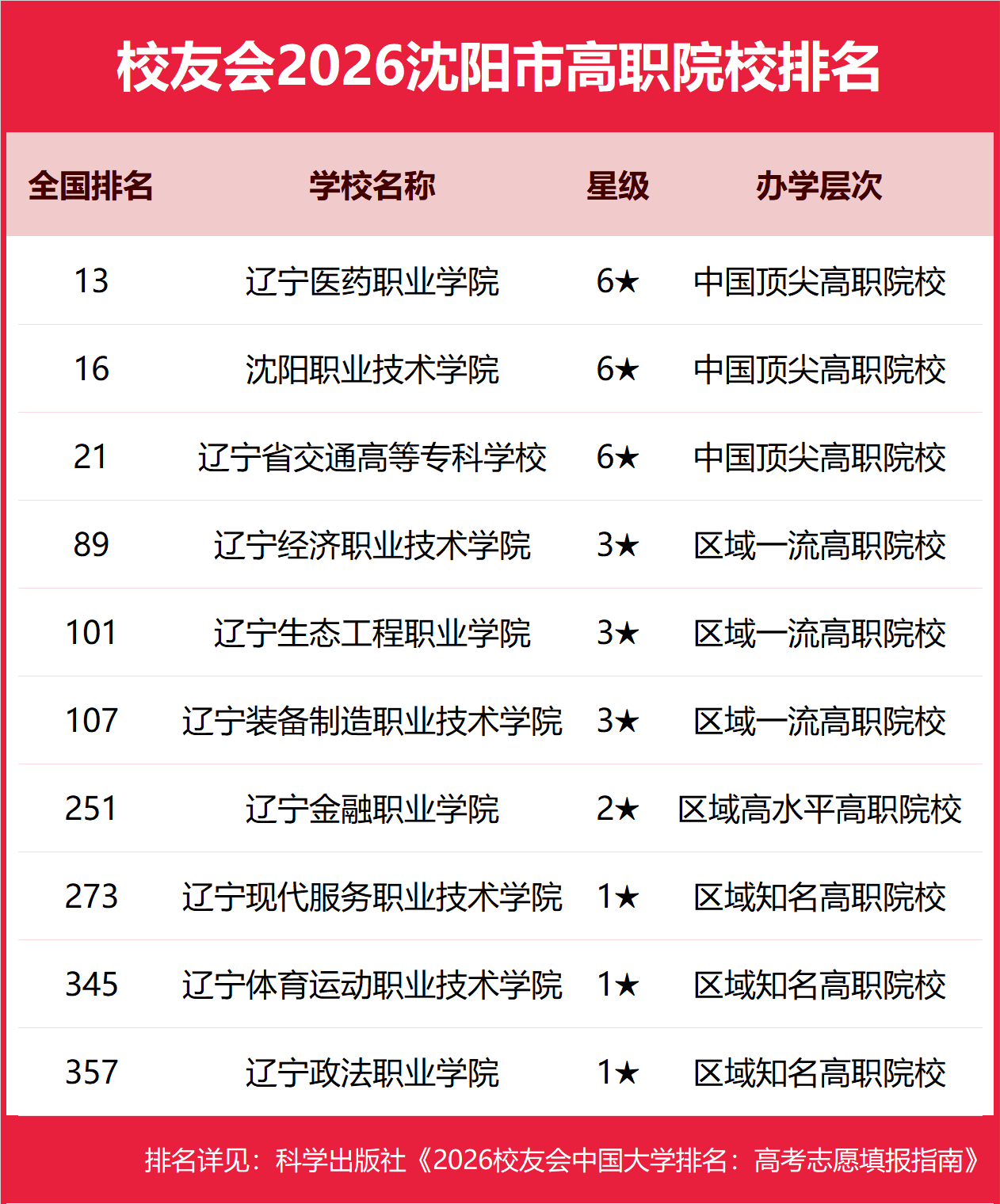 校友会2026沈阳市高职院校排名,辽宁医药职业学院第一,沈阳职业技术学院、辽宁省交通高等专科学校前三