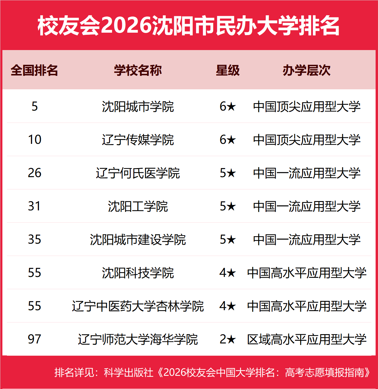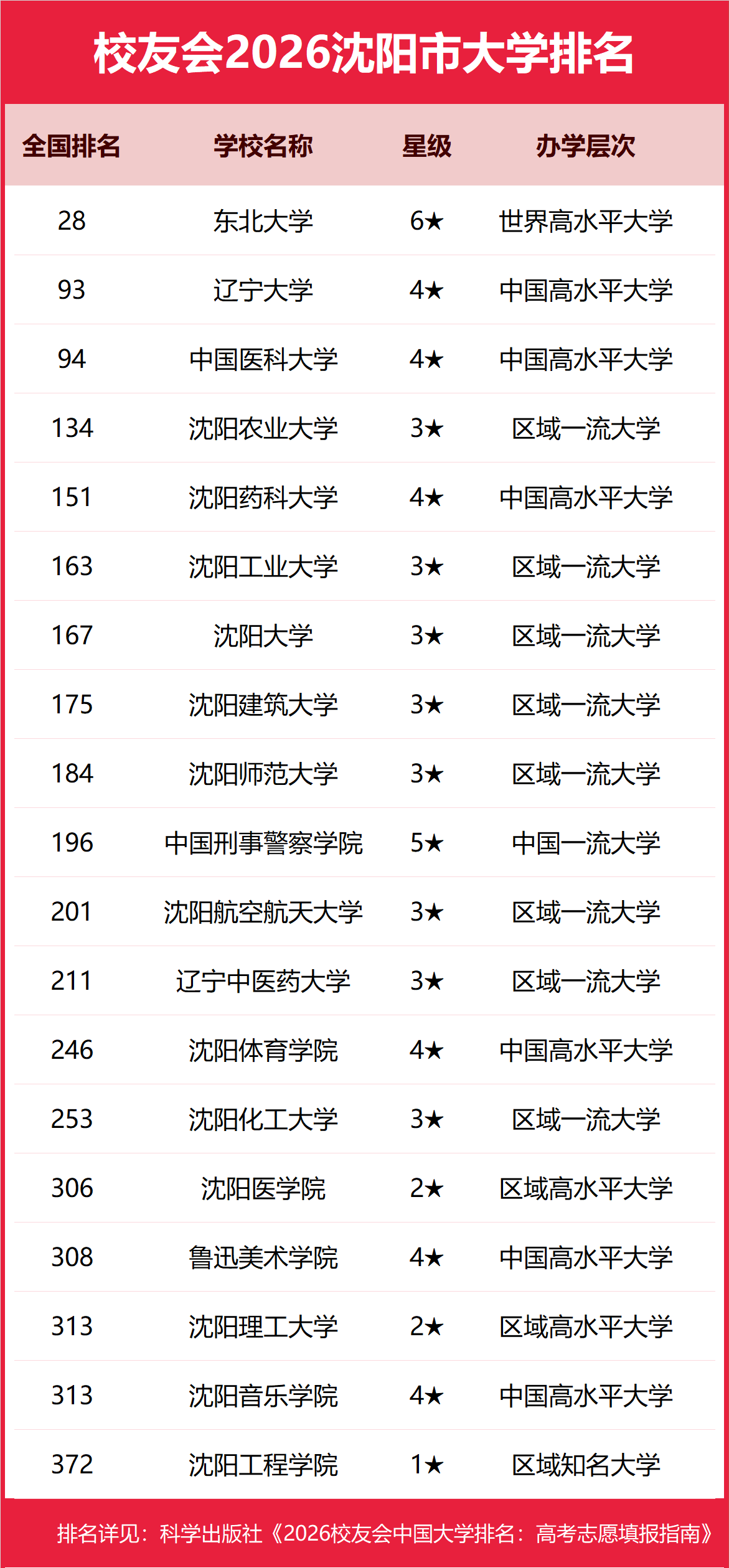 校友会2026沈阳市大学排名东北大学、沈阳城市学院、辽宁医药职业学院第一星空体育- 星空体育官方网站- APP下载
