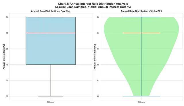 小朱利用分析软件做的年化利率分布情况,分析显示,马上消费贷款综合利率全部超过30%,普遍在34%左右
