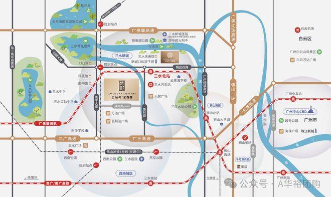 **金融街金悦郡**坐落在佛山三水新城CBD核心,驿南路与鲁村路交叉口西北80米,是金融街控股在三水新城布局的又一座高端湖居社区。项目紧扣三水新城“城市会客厅”定位,整体规划以现代东方美学为基调,打造城央生态中轴上的头排湖居生活。总占地约6万㎡,建筑面积约23万㎡,容积率2.8,绿化率30%,总户数约1632户,由金融街物业提供高端服务,精装交付标准让业主拎包即住。